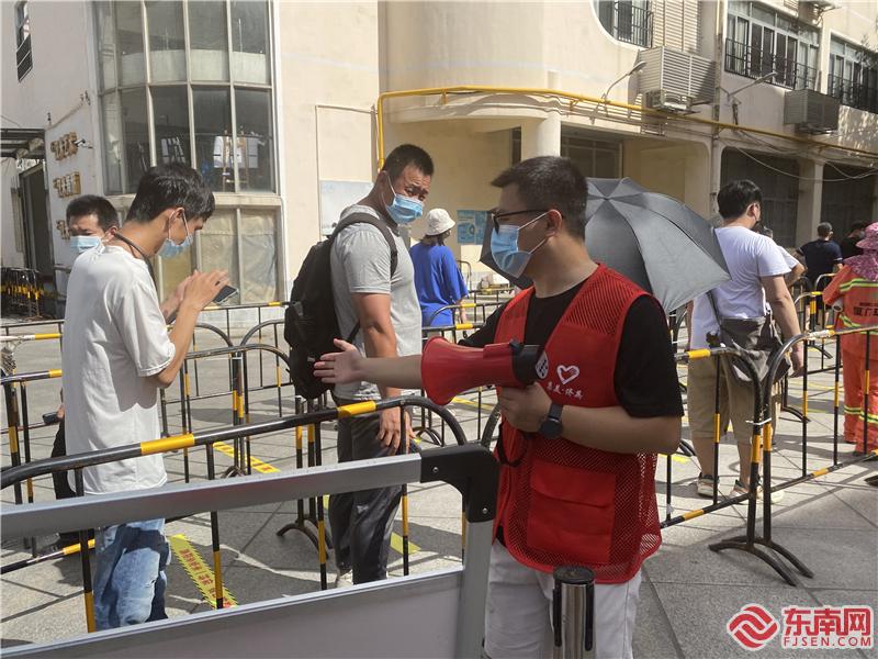 鳳林美社區(qū)志愿者在維持采樣點(diǎn)秩序(僑英街道新時代文明實(shí)踐所供圖)
