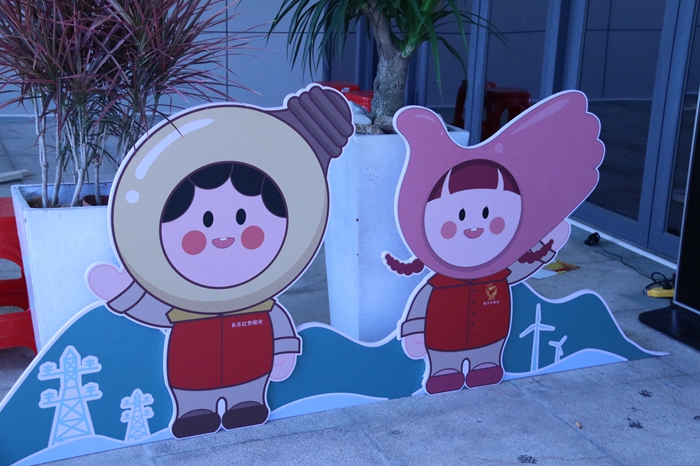 在國網(wǎng)長樂供電公司里,兩個卡通人物憨態(tài)可掬,引人注目。這是他們志愿服務的新代言人——“長小文和電小明”。其中戴著鴿子頭套的“長小文”身穿“電力義點亮”志愿服務紅馬甲,戴著燈泡頭套的“電小明”身著國網(wǎng)福建電力“雙滿意”(長樂紅色榕光)共產(chǎn)黨員服務隊紅馬甲。它們的形象展示了文明單位在志愿服務上的創(chuàng)新實踐。