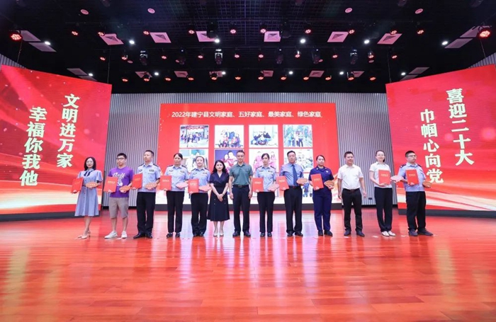 文明風(fēng)8月22日訊 8月19日,建寧縣婦聯(lián)、縣委文明辦、縣直機(jī)關(guān)黨工委聯(lián)合舉辦2022年度建寧縣文明家庭、五好家庭、最美家庭、綠色家庭頒獎(jiǎng)儀式暨“好家庭、好家教、好家風(fēng)”主題宣講會(huì)。