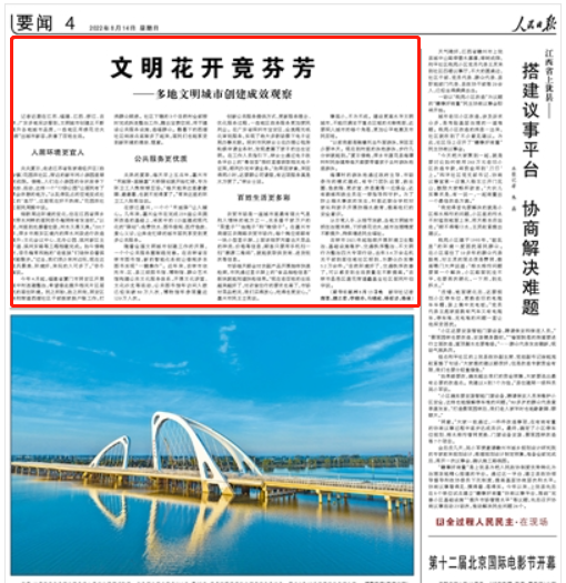 《人民日報(bào)》8月14日的報(bào)道《文明花開競芬芳——多地文明城市創(chuàng)建成效觀察》一文中,報(bào)道同安區(qū)祥和街道西湖社區(qū)的文明創(chuàng)建做法。