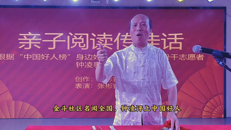 “臺江好人”張彬官創(chuàng)作伬唱節(jié)目《親子閱讀傳佳話》,以群眾喜聞樂見的形式宣傳“中國好人”鐘凌的事跡(臺江區(qū)委文明辦供圖)