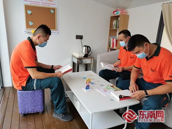 快遞員在“暖新鯉”驛站看書。許璇璇 供圖