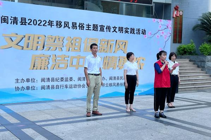 文明風(fēng)8月30日訊 為持續(xù)推動(dòng)移風(fēng)易俗、樹(shù)立文明殯葬新風(fēng),開(kāi)展厚養(yǎng)薄葬、文明祭掃主題宣傳,營(yíng)造殯葬改革濃厚氛圍,引導(dǎo)群眾認(rèn)同文明現(xiàn)代殯葬理念,逐步摒棄忌諱莫深、繁瑣迷信的殯葬活動(dòng),打造以綠色、生態(tài)、簡(jiǎn)潔、新穎為特色的現(xiàn)代殯葬文化,8月27日上午,“文明祭祖倡新風(fēng)、廉潔中秋情更濃”大型騎行宣傳活動(dòng)在閩清縣乃裳廣場(chǎng)成功舉辦。
