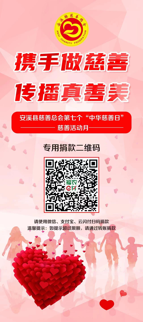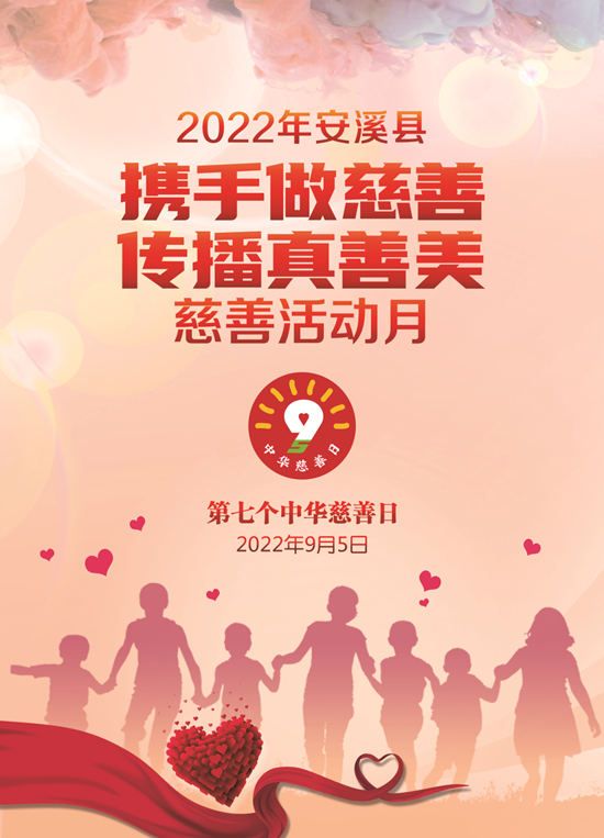 樂(lè)善好施、扶貧幫困是中華民族的傳統(tǒng)美德;相互幫助、患難扶持是社會(huì)倡導(dǎo)的時(shí)代新風(fēng)。2022年9月5日是我國(guó)第七個(gè)“中華慈善日”,為壯大我縣慈善力量、助力鄉(xiāng)村振興、促進(jìn)共同富裕,即日起至9月30日,我們將隆重開(kāi)展2022年安溪縣“攜手做慈善 傳播真善美”慈善月活動(dòng)。