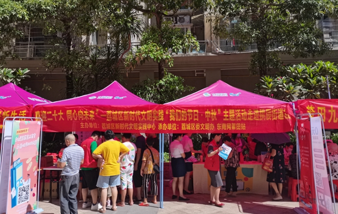 文明風9月6日訊 中秋佳節(jié)即將來臨。為大力弘揚中華優(yōu)秀傳統(tǒng)文化,積極培育踐行社會主義核心價值觀,9月3日上午,荔城區(qū)新時代文明實踐“我們的節(jié)日· 中秋”系列主題活動在拱辰街道東城一號小區(qū)開展。