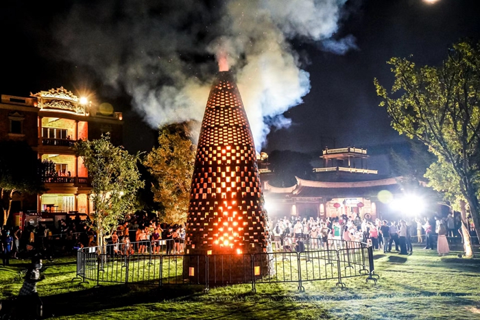 群眾在梧林傳統(tǒng)村落感受傳統(tǒng)“燒塔仔”民俗活動(dòng)