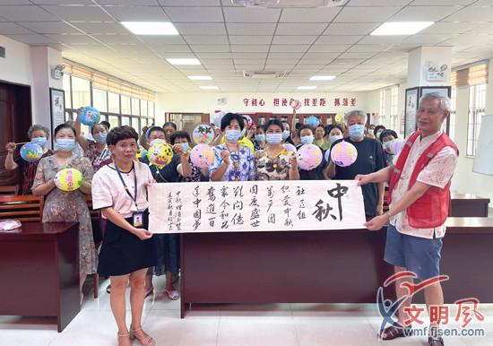 活動結(jié)束后,離退休干部黨支部組織委員、新時代文明實(shí)踐站黨員志愿者林紹山還書寫了中秋祝福語贈送社區(qū),為中秋佳節(jié)增添了書香飄墨的濃厚氣息。
