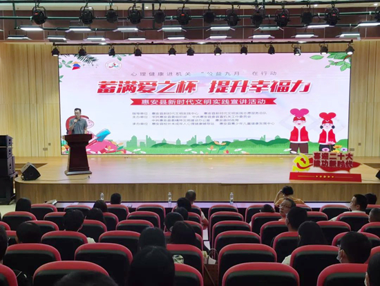 為持續(xù)構(gòu)建社會(huì)心理服務(wù)體系建設(shè),進(jìn)一步增進(jìn)干部心理健康意識(shí),提升干部隊(duì)伍整體活力,近日,惠安縣在縣新時(shí)代文明實(shí)踐中心,舉辦“公益九月”系列活動(dòng)之關(guān)愛干部職工心理健康暨職場(chǎng)文明禮儀宣講活動(dòng)。主辦單位相關(guān)領(lǐng)導(dǎo)、負(fù)責(zé)人、縣財(cái)政局全體干部職工參加了活動(dòng)。