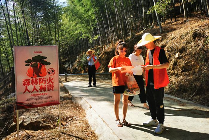 黨員志愿者在森林康養(yǎng)步道開(kāi)展文明勸導(dǎo)活動(dòng)