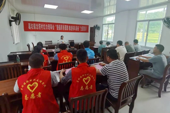 當(dāng)天,志愿者們還走村入戶發(fā)放宣傳《喪事簡辦新要求》《葛坑鎮(zhèn)移風(fēng)易俗倡議書》,并為留守老人等特殊群體開展打掃衛(wèi)生等志愿服務(wù)。