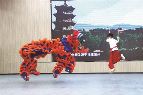 盧厝獅陣隊員和非遺傳承小選手展示非遺項目 石獅日報供圖