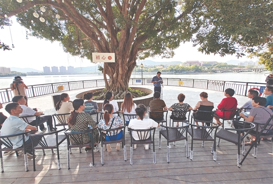 洛江馬甲鎮(zhèn)新時代文明實踐湖畔花園上的“初心島上講初心”活動。