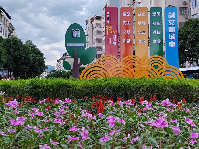 公益廣告“靚”起來,譜好“面子”曲。在主次干道、公園廣場、公交站點等重要節(jié)點增設(shè)公益廣告,對老舊破損的公益廣告進(jìn)行更新提升,同時將當(dāng)?shù)亍盎ㄠl(xiāng)、畫鄉(xiāng)、茶鄉(xiāng)”的文化和地域特色融入到廣告設(shè)計中,通過“潤物細(xì)無聲”的引導(dǎo)讓市民在潛移默化中接受文明的洗禮,營造“抬眼可見、駐足可觀、步步文明”的創(chuàng)城氛圍。2022年,城區(qū)增設(shè)燈桿旗862套、景觀小品50余個、宣傳欄50余處。