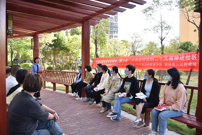 文明風(fēng)10月27日訊 近日,在霞浦縣松港街道東昇社區(qū)文化長廊,霞浦縣新時代文明實(shí)踐志愿服務(wù)總隊(duì)組織“霞小宣”特約宣講員圍繞黨的二十大報告中的“堅持全面依法治國,推進(jìn)法治中國建設(shè)”內(nèi)容,用通俗易懂的語言講解了全面依法治國的重要意義,帶領(lǐng)干部群眾更好地學(xué)習(xí)、理解、領(lǐng)悟黨的二十大精神。同時,宣講員將黨的二十大精神與霞浦縣檢察院典型案例相結(jié)合,通過現(xiàn)場講解、發(fā)放宣傳手冊等方式,為干部群眾上了堂生動的普法課,引導(dǎo)干部群眾自覺學(xué)法、守法、用法,切實(shí)增強(qiáng)干部群眾的依法維權(quán)意識和自我保護(hù)能力。(霞浦縣委宣傳部 葉欽寧)