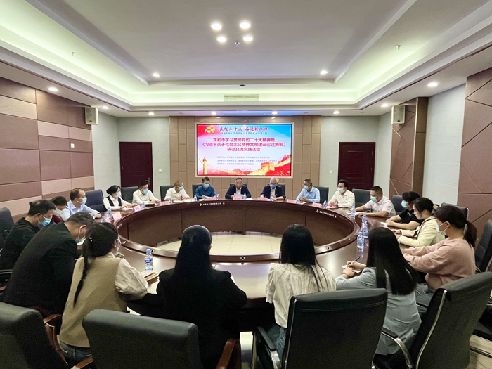 文明風(fēng)10月26日訊 為學(xué)深悟透習(xí)近平總書記關(guān)于精神文明建設(shè)的重要論述,領(lǐng)會把握蘊含其中的思想內(nèi)涵和實踐要求,增強做好新時代精神文明建設(shè)工作的責(zé)任感和使命感,以實際行動慶祝黨的二十大勝利召開,10月26日,龍巖市學(xué)習(xí)貫徹黨的二十大精神暨《習(xí)近平關(guān)于社會主義精神文明建設(shè)論述摘編》研討交流實踐活動在新羅區(qū)小池鎮(zhèn)培斜村新時代文明實踐站舉行。龍巖市委宣傳部副部長、文明辦主任陳杭芹,區(qū)委常委、宣傳部部長王勝,區(qū)委文明辦、龍巖農(nóng)商銀行、小池鎮(zhèn)相關(guān)負(fù)責(zé)人及部分村民代表參加。