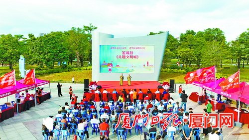 在“文明直通車”進蘇頌公園暨“無煙公園”共創(chuàng)活動現場,人們用文藝會演演繹同安創(chuàng)建文明城區(qū)風采。夏海濱攝