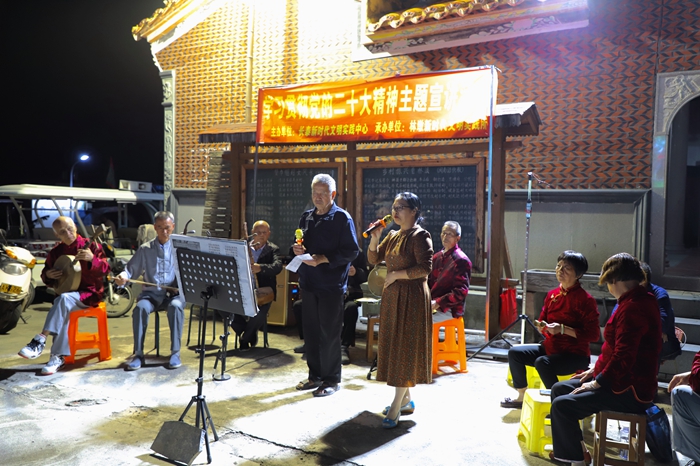 林溪村新時代文明實踐站“老漢宣講隊”用方言快板宣講黨的二十大精神 供圖:長泰區(qū)林溪村