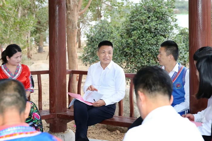 在赤嶺村公園涼亭里,張國(guó)旺與赤嶺鄉(xiāng)、赤嶺村、楊美村、山平村基層干部和種植大戶、閩臺(tái)畬族博物館講解員等村民代表座談交流,專題宣講黨的二十大精神。座談中,大家結(jié)合自身實(shí)際,暢談學(xué)習(xí)體會(huì),氣氛十分熱烈。