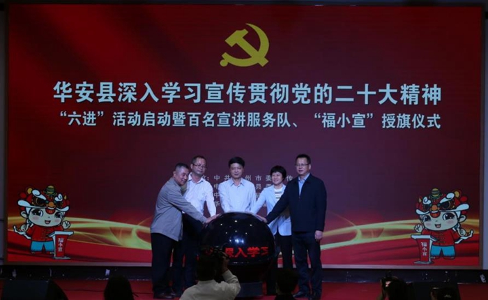 11月2日,在世界文化遺產(chǎn)地——仙都鎮(zhèn)大地村,隨著“六進(jìn)”活動(dòng)啟動(dòng)球的按下,華安縣深入學(xué)習(xí)宣傳貫徹黨的二十大精神“六進(jìn)”活動(dòng)正式啟動(dòng)。