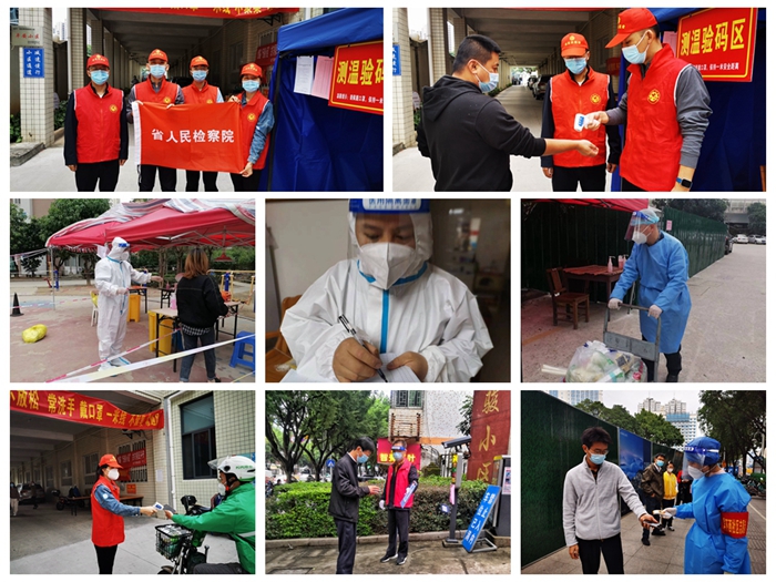 文明風(fēng)11月7日訊 近日,在福建省檢察院下發(fā)《關(guān)于省院機(jī)關(guān)進(jìn)一步發(fā)揮黨支部和廣大黨員干部作用打贏疫情防控殲滅戰(zhàn)的通知》《關(guān)于給省院機(jī)關(guān)居家辦公黨員的溫馨提示》后,省檢察院廣大居家辦公黨員干部積極響應(yīng)發(fā)揮黨員干部先鋒模范作用,在做好個人防護(hù)措施、確保安全的前提下,主動就近就地投身“近鄰黨建”,深入社區(qū)協(xié)助開展現(xiàn)場引導(dǎo)、測溫掃碼、排查風(fēng)險、核酸檢測等志愿服務(wù)工作,落細(xì)落實(shí)創(chuàng)建“無疫小區(qū)”,助力福州打贏疫情防控殲滅戰(zhàn),在戰(zhàn)“疫”大考中書寫檢察擔(dān)當(dāng)。
