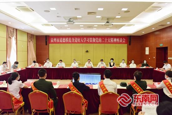 11月11日上午,泉州市召開道德模范身邊好人學(xué)習(xí)貫徹黨的二十大精神座談會(huì)。第七屆福建省道德模范、第七屆泉州市道德模范、中國(guó)好人代表等參加座談會(huì),分享交流學(xué)習(xí)黨的二十大精神感悟。