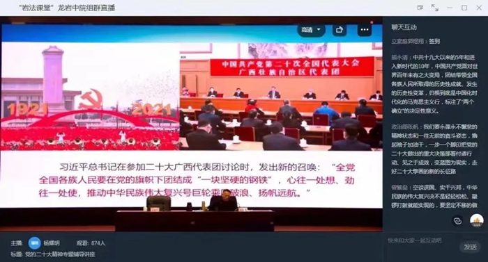 在龍巖中院的“巖法課堂”上,市委講師團(tuán)紅色“巖”講家以線上線下相結(jié)合的方式進(jìn)行宣講