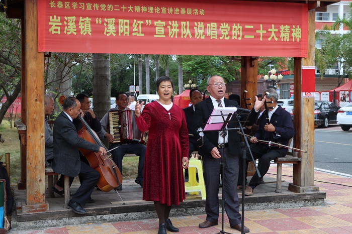 巖溪鎮(zhèn)“溪陽紅”宣講隊說唱黨的二十大精神 供圖:長泰區(qū)巖溪鎮(zhèn)