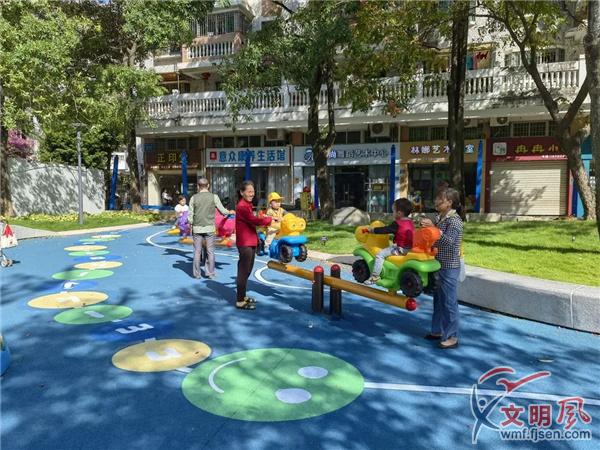 附近居民帶孩子在口袋公園里游玩。(海滄區(qū)委文明辦供圖)