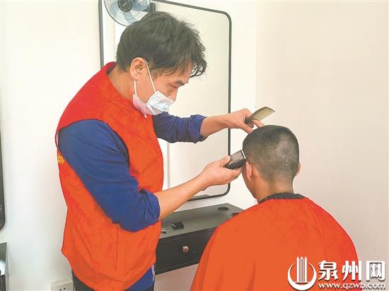 “志超哥哥,你來(lái)啦!”上午9時(shí)許,潘志超走進(jìn)泉州市殘疾人托養(yǎng)中心生活體驗(yàn)區(qū)的模擬理發(fā)室時(shí),已有幾位“顧客”在門(mén)口等待。他和4名團(tuán)隊(duì)成員立刻穿上工作服,拿起剪刀、梳子等工具,在理發(fā)室忙活起來(lái)。