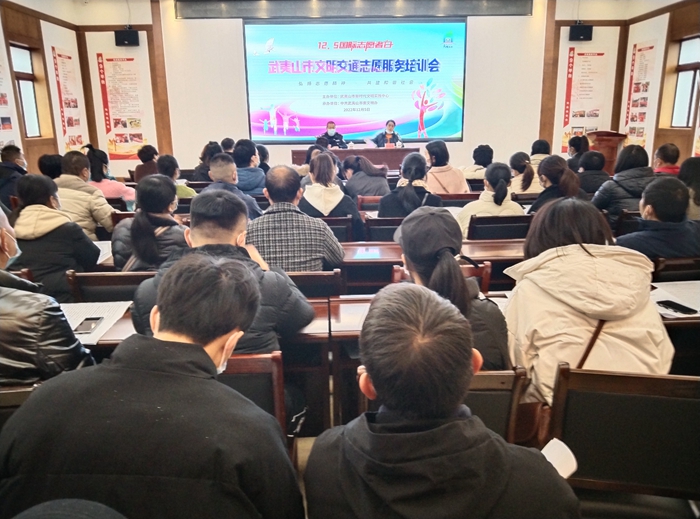 文明風12月7日訊 為提升文明交通勸導志愿者服務水平,展示志愿者良好風貌,12月5日,武夷山市委文明辦在新時代文明實踐中心舉辦文明交通志愿服務培訓,全市文明交通勸導員近百人參加培訓。