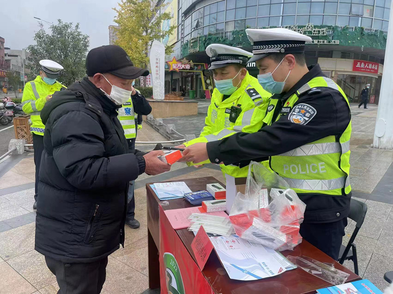 向群眾發(fā)放“122”宣傳資料(浦城縣公安局交警大隊(duì) 供圖)