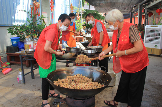 每天午餐前,五美社區(qū)近鄰食堂都有一群來(lái)幫忙的志愿者。