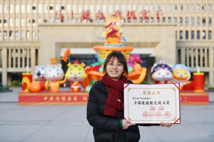 資料圖片:黃思林收到“全國(guó)道德模范提名獎(jiǎng)”證書。王立強(qiáng) 攝