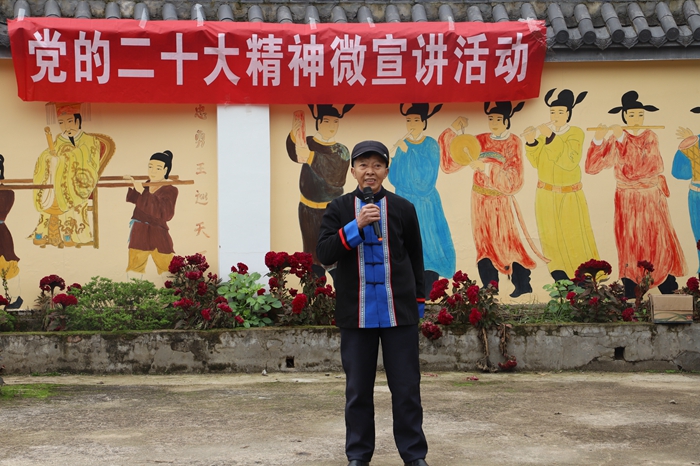 “作為浦城縣新時代微宣講員,今天非常地榮幸能夠?qū)Ⅻh的二十大精神送入基層,讓‘聚是一團火、散是滿天星’的二十大精神進入千家萬戶。黨的二十大報告振奮人心、催人奮進,為大家的團結(jié)奮斗指明了方向、路徑,今后會再接再厲,為大家?guī)砀泳实男v?!?微宣講員謝慧文說。