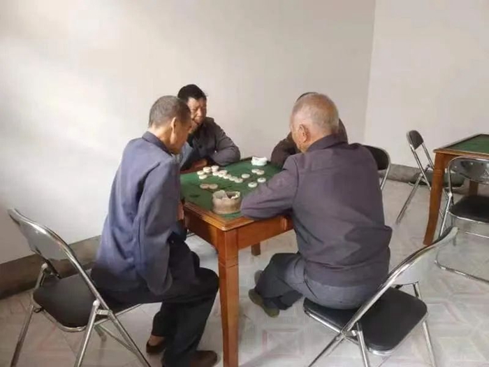老人們在培田村老人食堂棋牌室下棋