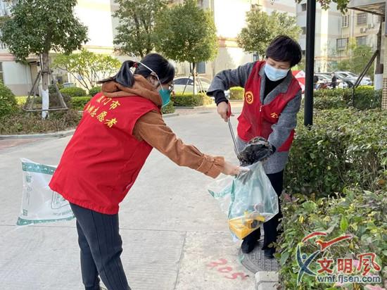 志愿者清理各類衛(wèi)生死角(金山街道供圖)