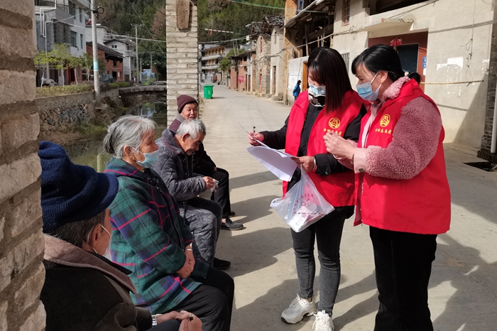 “發(fā)燒了才能吃,不發(fā)燒就不要吃。一次吃一片,隔四小時還燒才能再吃一片,一天吃兩片,不能多吃??!如果燒一直不退,要及時去找醫(yī)生看病?。∑匠R龊萌粘7雷o(hù)?!备鞔逯驹刚咦叽迦霊簦?xì)心地跟老人及子女交代用藥注意事項做好日常防護(hù)。寒冬里,“紅馬甲”在村陌巷道里送藥的身影顯得格外溫暖。