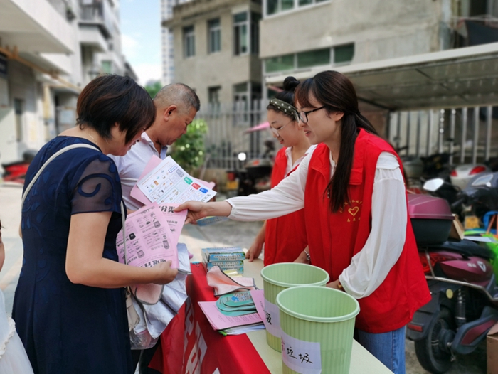 志愿者在社區(qū)內(nèi)開展垃圾分類宣傳活動(永泰縣文明辦供圖)