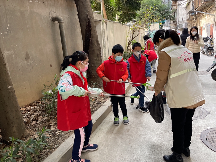 “大手拉小手”一起清理垃圾(鼓樓區(qū)委文明辦供圖)