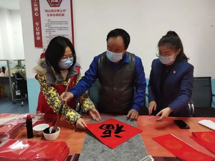 用“?!弊謺鴮懶麓旱募?,用春聯(lián)表達(dá)美好祈愿?!案M乾坤”“福如東海”“洪福齊天”……滲透在中國人骨子里的除舊迎新,盡在那一聯(lián)聯(lián)紅紙、一個個方塊福字里。金源物業(yè)、各共建單位志愿者、居民志愿者們免費書寫春聯(lián),送“?!边M(jìn)萬家,進(jìn)一步推廣傳統(tǒng)民俗活動,滿足廣大居民的精神文化需求。