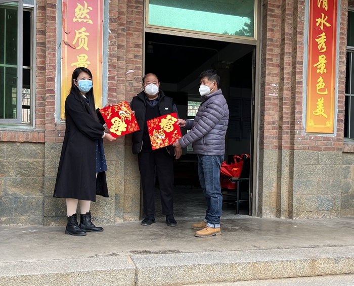 活動中,志愿者們來到村民家中,為村民們送上一幅幅火紅的春聯(lián)和一張張吉祥的“福”字,祝福他們身體健康、闔家歡樂,拿到“福”字和春聯(lián)的村民們臉上露出開心的笑容,紛紛表示感謝。交談中,志愿者還向村民們發(fā)放煙花爆竹禁止燃放的政策和規(guī)定、文明餐桌、文明祭祀等宣傳單、宣傳冊,呼吁大家自覺遵守禁放規(guī)定,引導(dǎo)大家以文明、科學(xué)、健康的生活方式過節(jié)儉樸素的春節(jié)。