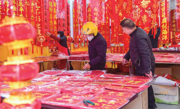 年貨市場里,琳瑯滿目的春聯(lián),飽含著人們對吉祥如意的向往;新鮮的蔬菜、海鮮在貨架上供市民進行挑選,準(zhǔn)備烹制出美味的年夜飯;各類包裝精美的禮品盒驚艷亮相,等待被顧客相中送給親朋好友……生活總是需要儀式感,而春節(jié)就在置辦年貨之中拉開了序曲,人們的生活也翻開了新篇章。