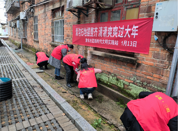 1月13日,三元區(qū)重化社區(qū)新時(shí)代文明實(shí)踐站組織開(kāi)展“清溝掃地?cái)[整齊 清清爽爽過(guò)大年”志愿服務(wù)行動(dòng)