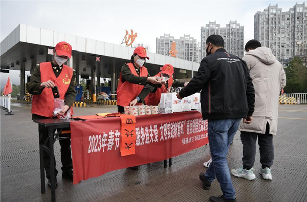 1月14日,福建省高速公路集團(tuán)有限公司三明管理分公司在三明沙縣高速收費(fèi)口開(kāi)展春運(yùn)暖城送溫暖志愿服務(wù)行動(dòng)