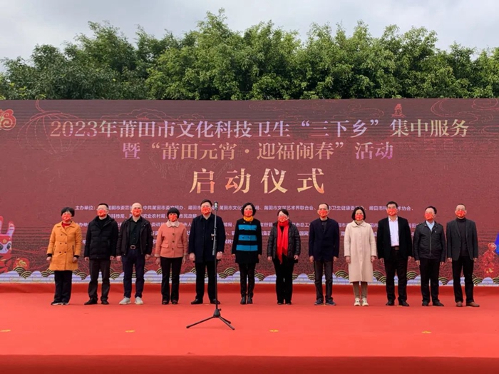 1月18日下午,2023年莆田市文化科技衛(wèi)生“三下鄉(xiāng)”集中服務(wù)暨“莆田元宵?迎福鬧春”活動(dòng)啟動(dòng)儀式在荔城區(qū)西天尾鎮(zhèn)后黃社區(qū)舉行。市委常委、宣傳部部長(zhǎng)陳惠黔出席,并宣布莆田市2023年“三下鄉(xiāng)”集中服務(wù)暨“莆田元宵?迎福鬧春”活動(dòng)啟動(dòng)。陳惠黔還代表市委、市政府向西天尾鎮(zhèn)捐贈(zèng)“三下鄉(xiāng)”活動(dòng)資金,并向后黃社區(qū)“僑鄉(xiāng)記憶文藝家部落”授“福建省新時(shí)代特色文藝示范基地”牌匾,參觀“這就是莆田?遇見后黃”攝影展。