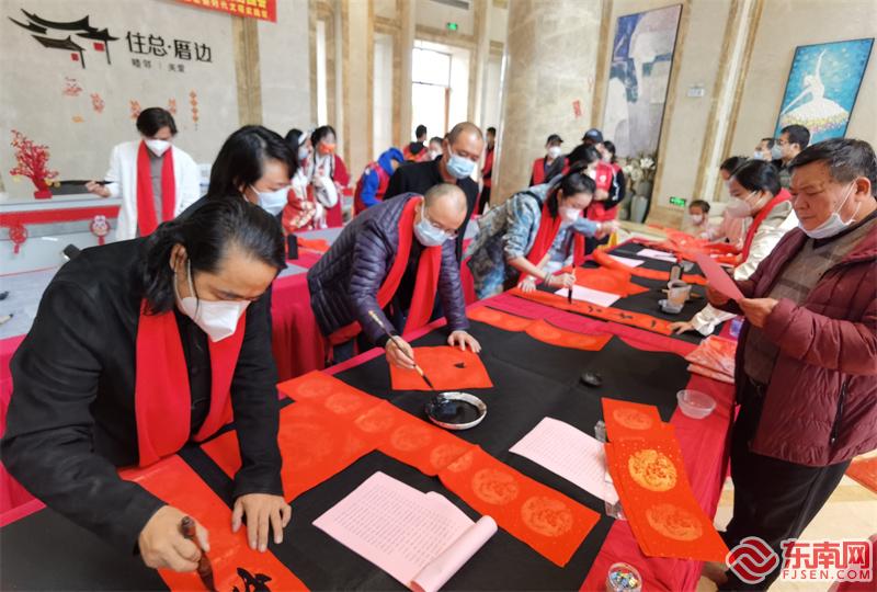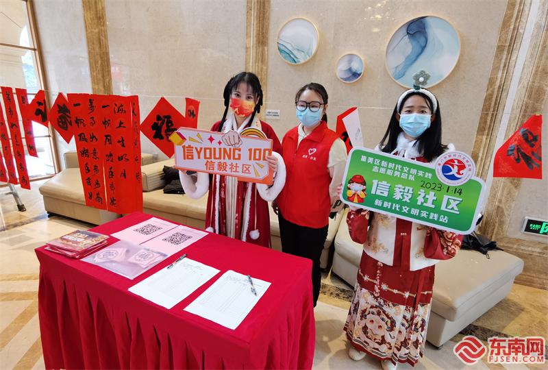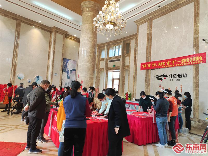 文明風(fēng)1月19日訊 在2023年新春佳節(jié)來臨之際,為弘揚中華傳統(tǒng)福文化,營造歡樂祥和的春節(jié)氛圍,在廈門市集美區(qū)信毅社區(qū)黨支部的組織帶領(lǐng)下,信毅社區(qū)新時代文明實踐站于日前開展“弘揚‘?!幕瑲g度幸‘?!辍毙乓闵鐓^(qū)游園會活動,特邀書畫家和社區(qū)書記現(xiàn)場揮毫潑墨,為居民寫春聯(lián),送“?!弊?。