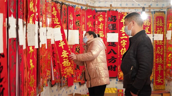 2023年新春進入倒計時階段,將樂街頭巷尾的年味日漸濃郁。商超、年貨市場里,各式各樣的春聯(lián)、福字等商品琳瑯滿目,前來選購年貨的人絡繹不絕,市民們忙著選購春節(jié)飾品,到處都是喜氣洋洋的景象。