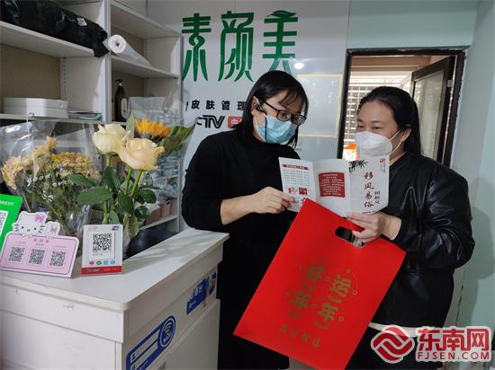 社工走訪商家宣傳移風易俗并送上春聯(lián)(張妍娜 攝)