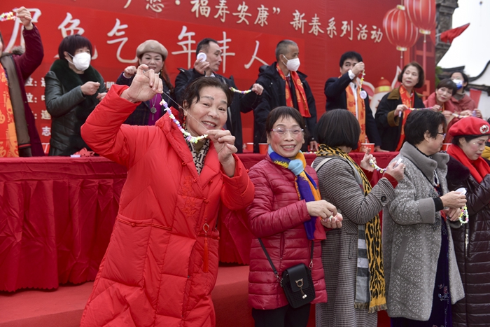 其中,迎新春活動以“關(guān)愛老人,福壽綿長”專題,推出關(guān)愛老人義診、仙翁祝壽、送百壽桃、描繪百壽圖、贈防疫香囊等活動,并普及疫苗接種知識,提升老年人防護(hù)意識。