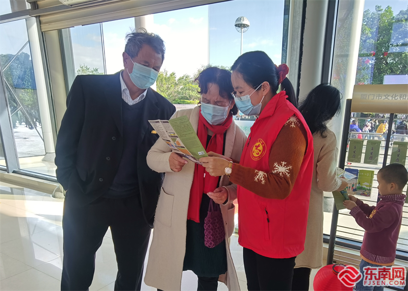 廈門園林博覽苑志愿服務(wù)隊志愿者向游客提供問詢服務(wù)、宣傳文明旅游(集美·誠毅志愿者聯(lián)盟 供圖)